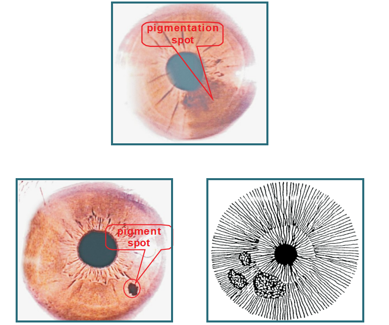 Las manchas pigmentarias en el iris se forman principalmente por depósitos externos derivados de la absorción de toxinas del entorno cotidiano, ya sea por contacto directo o a través de la alimentación. Esto puede provocar anomalías fisiológicas, alteraciones bioquímicas o cambios patológicos, incluyendo daños en el sistema nervioso central, la sangre, el sistema respiratorio, el sistema circulatorio y las funciones hepáticas y renales, con consecuencias graves e involuntarias.